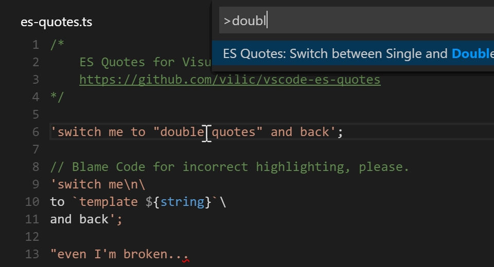 ext install es-quotes